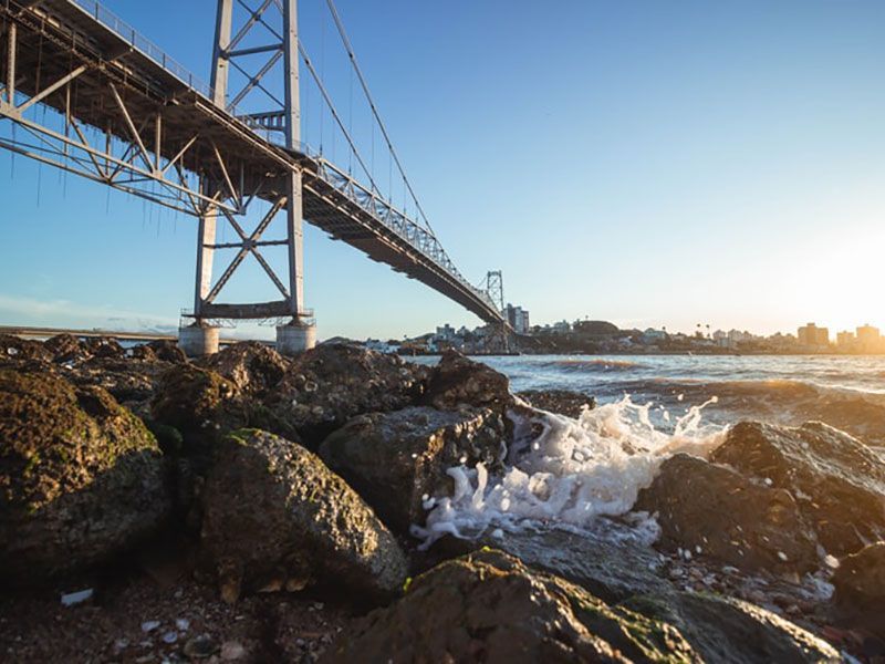 Florianópolis, a capital do estado de Santa Catarina no sul do Brasil, é maioritariamente constituída pela Ilha de Santa Catarina, com 54 km de comprimento. É famosa pelas suas praias, incluindo estâncias turísticas populares como a Praia dos Ingleses na extremidade norte da ilha. A sua Lagoa da Conceição, uma lagoa de água salgada, é popular para a prática de windsurf e para excursões de barco. A Ponte Pedro Ivo Campos faz a ligação entre a ilha e a zona comercial continental.